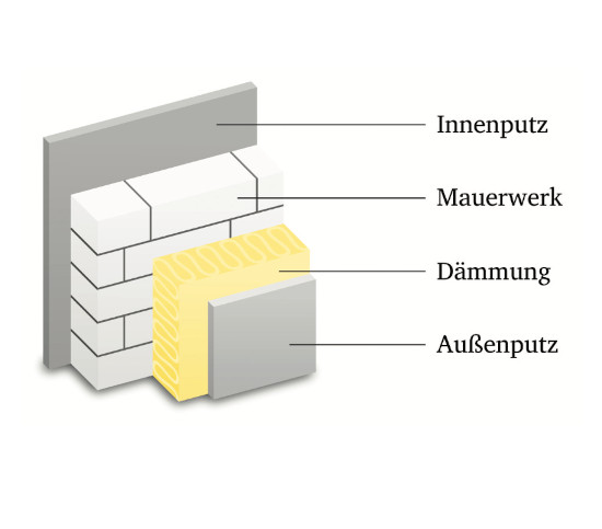 Durch den Verbund von mehreren, aufeinander abgestimmten Ebenen aus verschiedenen Baustoffen gewährleisten wir eine optimale Dämmung, die Wärmeverlust ausschließt, einen geringen Luftwechsel zulässt und Wasseransammlungen innerhalb der Gebäudewand vermeidet.